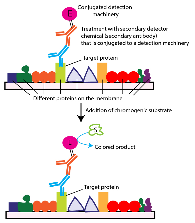不同的底物在與酶的氧化反應過程中產(chǎn)生不同的顏色。例如,辣根過氧化物酶底物與HRP酶反應后產(chǎn)生以下結果: