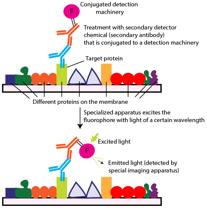 報告酶-底物反應中產(chǎn)生的光用作化學發(fā)光檢測系統(tǒng)的信號。用于HRP酶的化學發(fā)光底物溶液包括魯米諾。AP酶需要基于1,2-二氧雜環(huán)丁烷的試劑來產(chǎn)生X射線膠片或電荷耦合器件(CCD)相機捕獲的信號。