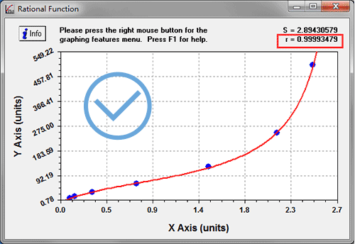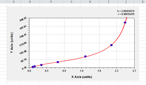 該軟件可以輕松定位 x/y 點、微分以及通過從繪圖菜單中選擇“分析”或按 Ctrl-L 執(zhí)行的曲線擬合積分。在此示例中,我們希望通過評估給定 OD(X 值)下的曲線擬合來找到目標(biāo)蛋白的濃度(Y 值)。只需在“At X=”字段中輸入要評估曲線擬合的點(x 值),然后按鍵盤上的[ Calculate ] 或 [ Enter ]。然后計算器將顯示相應(yīng)的 y 值。