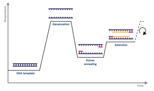 聚合酶鏈?zhǔn)椒磻?yīng)(PCR)是一種用于制備DNA特定片段的多個(gè)副本的方法。這個(gè)過程從少量模板DNA開始,然后通過稱為聚合酶的酶進(jìn)行復(fù)制。通過重復(fù)加熱和冷卻循環(huán)可以增加復(fù)制的數(shù)量,這會(huì)分離DNA鏈,以便它們可以再次復(fù)制。