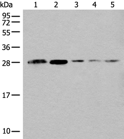 Human heart tissue,A431,Hela,A549 and HEPG2 cell lysates |